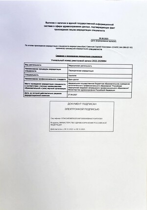 В 1999-2000 г.г. обучался в клинической интернатуре, в 2000-2002 г.г. клинический ординатор кафедры урологии ММА им. И.М. Сеченова.